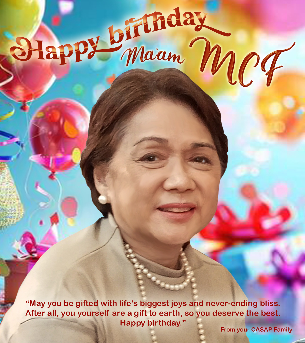 Cheers to the birthday of our beloved Ma’am MCF, the founder and president of CASAP. May this day fill your heart with abundant joy, laughter, and gratitude. We hope you have a wonderful birthday! 🫶😊